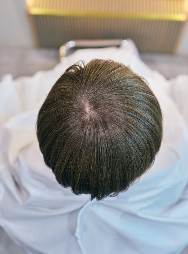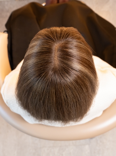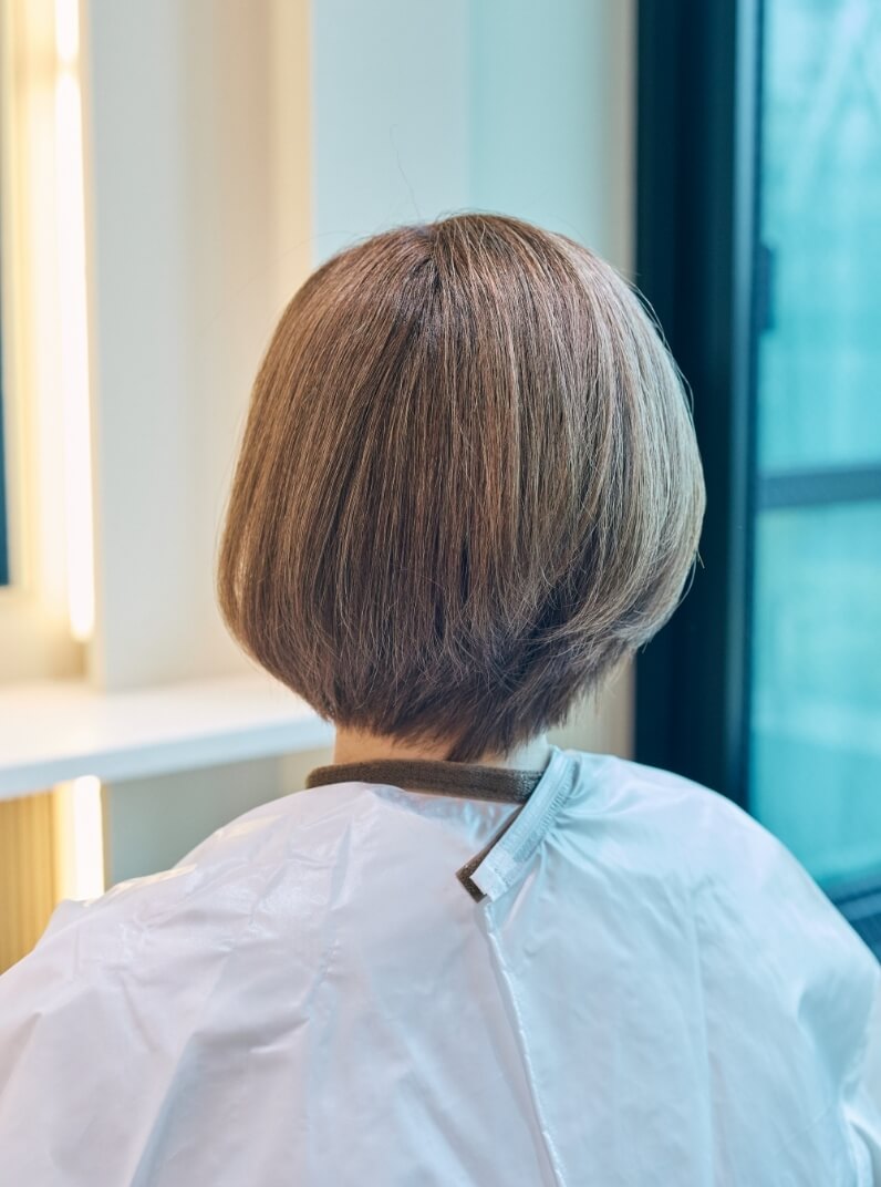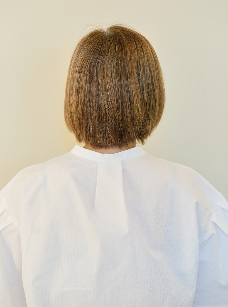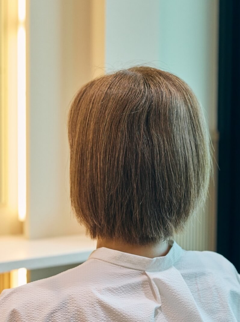 白髪特有の「生え際だけ目立つ」悩みを、カラーの技術で解消。境目が目立ちにくくなり、次のカラーまでの周期を延ばせます。