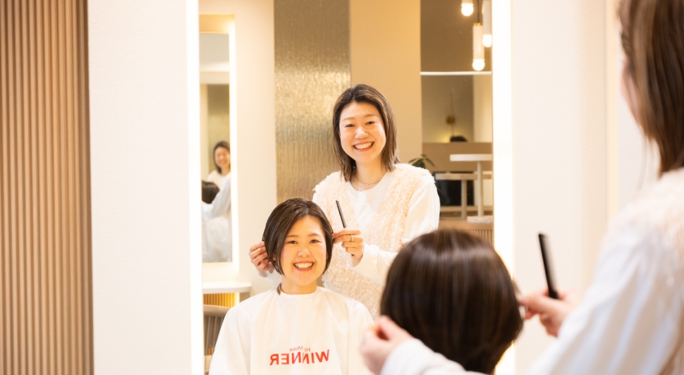 WINNERでは、豊富な経験を持つスタッフが親身に耳を傾け、髪のお悩みや理想を丁寧に引き出します。安心してご相談いただける環境が整っています。