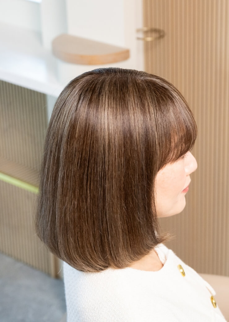 派手すぎないナチュラルなハイライトに色味やツヤを表現しながら、気になる白髪をカバーします。
