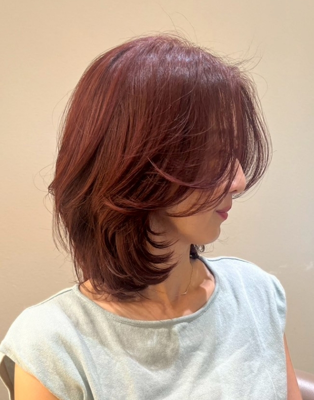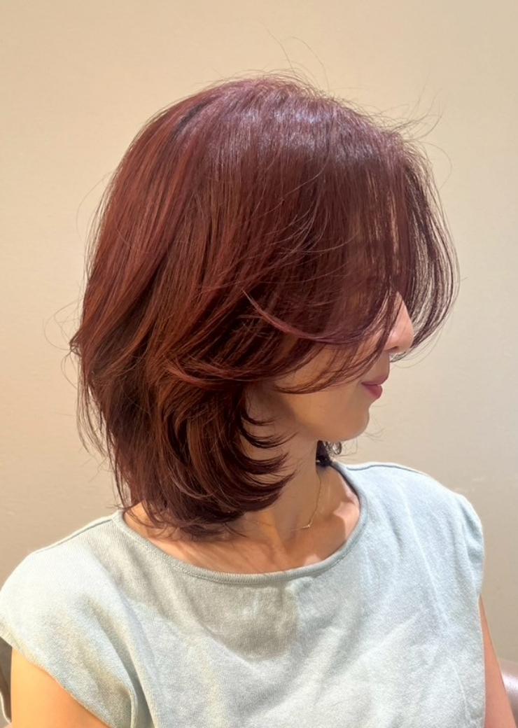 ファッションカラーと同様に豊かな色味で白髪を染めつつ、透明感のある仕上がりになります。