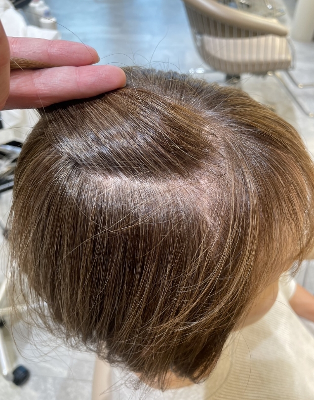 白髪染め用カラー剤を使用せずに、ファッションカラーで明るめに染めることで、透明感が出て、伸びてきた白髪と馴染みをよくすることができます。