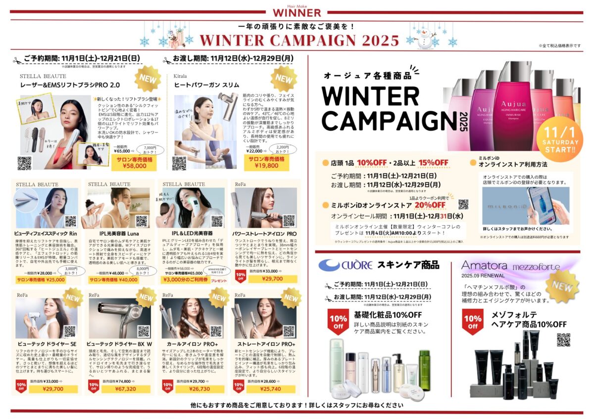 日ごろの感謝の気持ちとしまして、全店舗でウィンターキャンペーンを実施いたします。