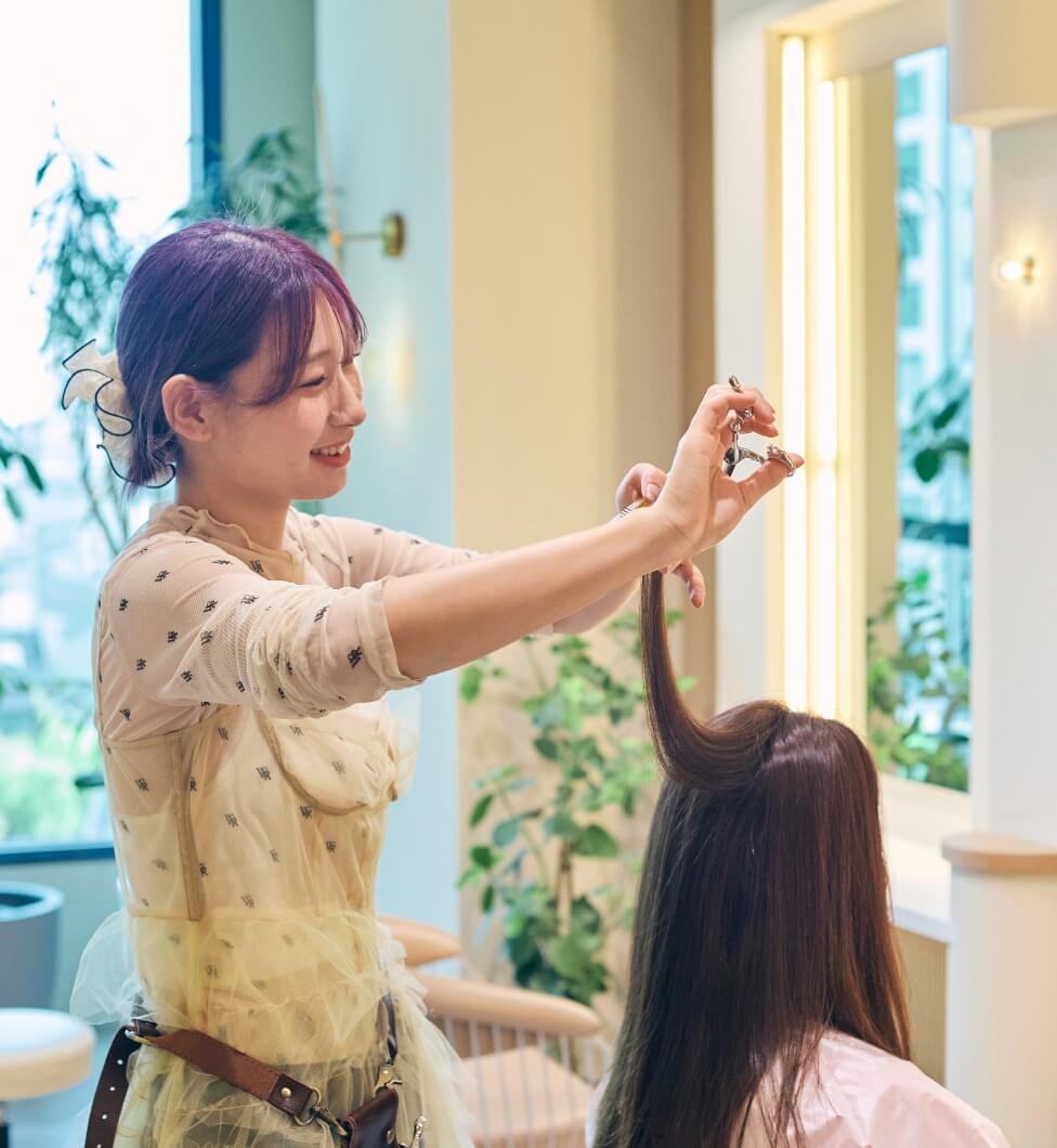 保育園の時に、お母さんの美容室について行き、店内の雰囲気、シャンプー、カットする姿勢、ハサミが全てがかっこよく見え、美容師になりたいと思うようになりました。